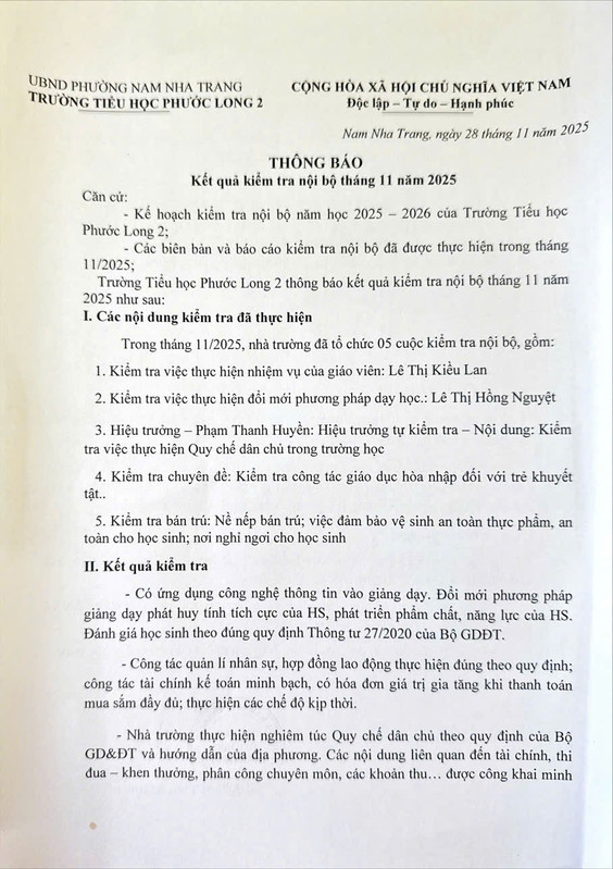 THÔNG BÁO - KIỂM TRA NỘI BỘ THÁNG 11-2025