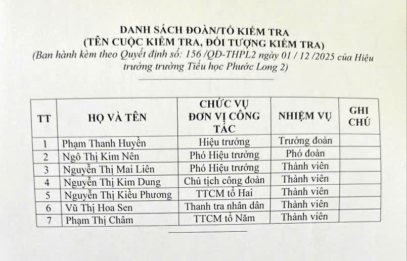QUYẾT ĐỊNH THÀNH LẬP BAN KIỂM TRA NỘI BỘ THÁNG 11 - 2025
